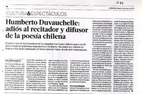 Humberto Duvauchelle: adiós al recitador y difusor de la poesía chilena [artículo] Pedro Bahamondes Ch.