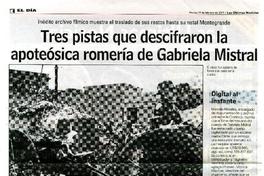 Tres pistas que descifraron la apoteósica romería de Gabriela Mistral [artículo] Daniel Aguayo.