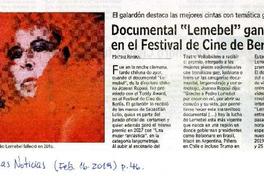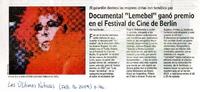 Documental "Lemebel" ganó premio en el Festival de Cine de Berlín [artículo] / Matías Rivera. Las Últimas Noticias (Diario : Santiago, Chile)-- feb. 16, 2019, p. 46. 1 página : ilustración en color. .