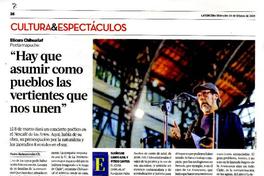 "Hay que asumir como pueblos las vertientes que nos unen" [entrevista] / [artículo] : Pedro Bahamondes Ch. La Tercera (Diario : Santiago, Chile)-- feb. 20, 2019, p. 26. 1 página : ilustración en color. .