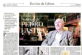 Noticias de Pedro Lastra [artículo] / Francisco Véjar. El Mercurio (Diario : Santiago, Chile)-- feb. 24, 2019, p. E8 (suplemento "Artes y Letras" "Revista de Libros") 1 página : ilustración en color. .
