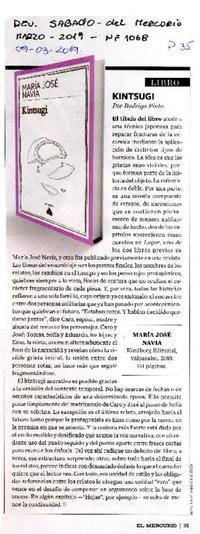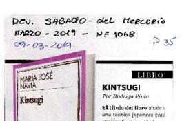 Kintsugi [artículo] / Rodrigo Pinto. El Mercurio (Diario : Santiago, Chile)-- mar. 9, 2019, p. 35 (suplemento "Sábado" no. 1068) 1 página : ilustración en color. .