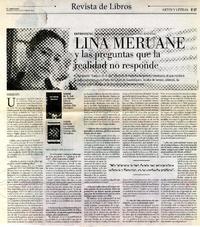 Lina Meruane y las preguntas que la realidad no responde [entrevista] / [artículo] : Patricio Tapia. El Mercurio (Diario : Santiago, Chile)-- Noviembre 25, 2012, página E17 (Suplemento "Artes y Letras""Revista de Libros") 1 página. .