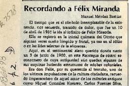 Recordando a Félix Miranda [artículo] Manuel Méndez Bastías.