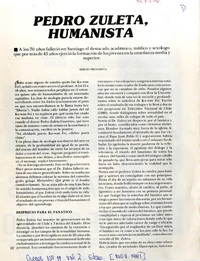 Pedro Zuleta, humanista [artículo] / Sergio Prenafeta. Creces (Revista : Santiago, Chile)-- Numero 11, (noviembre 1981) página 22-23 2 página : ilustración en blanco y negro ; .