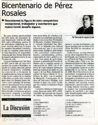 Bicentenario de Pérez Rosales [artículo] / Fernando Arriagada Cortés. La Discusión (Chillán, Chile) Mayo 18, 2007, página 3. 1 página. .