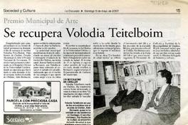 Se recupera Volodia Teitelboim [artículo] La Discusión (Chillán, Chile) Mayo 6, 2007, página 15. 1 página. .