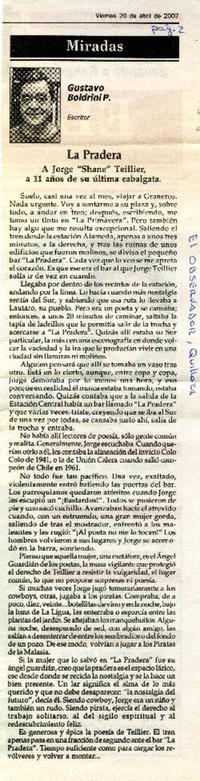 La pradera [artículo] / Gustavo Boldrini. El Observador (Quillota, Chile) Abril 20, 2007, página 2. 1 página .