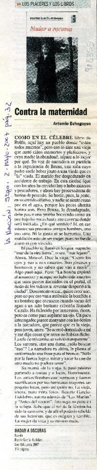 Contra la maternidad [artículo] / Artemio Echegoyen. La Nación (Diario : Santiago, Chile) Mayo, 2, 2007, página 32. 1 página : ilustración en blanco y negro. .