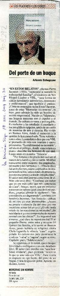 Del porte de un buque [artículo] / Artemio Echegoyen. La Nación (Diario, Santiago, Chile) Abril 18, 2007, página 30. 1 página. .