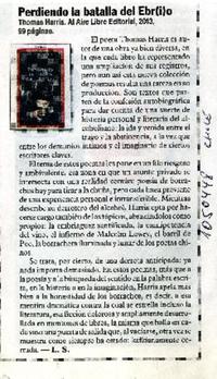 Perdiendo la batalla del Ebr(i)o [artículo] / Leonardo Sanhueza. Las Últimas Noticias (Diario : Santiago, Chile) Julio 14, 2013, página 38. 1 página : ilustración en color. .