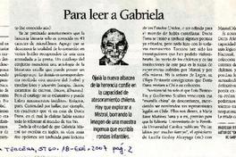 Para leer a Gabriela [artículo] / La Tercera (Diario : Santiago, Chile)-- ene. 18, 2007, p. 2. .
