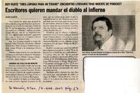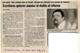 Escritores quieren mandar el diablo al infierno [artículo] / Javier García. La Nación (Diario : Santiago, Chile)-- Enero 16, 2007, página 27. .