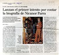 Lanzan el primer intento por contar la biografía de Nicanor Parra. [artículo] / Roberto Careaga C. La Tercera (Santiago, Chile) Enero 16, 2007, página 41. 1 página : ilustraciones en color. .