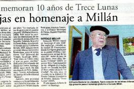 Conmemoran 10 años de Trece Lunas Rojas en homenaje a Millán [artículo]. La Discusión (Diario : Chillán, Chile)-- Mayo 9, 2007, página 19. 1 página : ilustración en blanco y negro. .