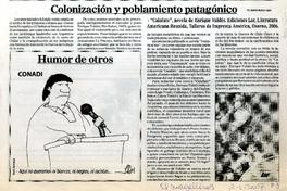 Colonización y poblamiento patagónico [artículo] / Marino Muñoz Lagos. El Magallanes (Diario : Punta Arenas, Chile)-- Mayo 13, 2007, página 3. 1 página : ilustración en blanco y negro. .