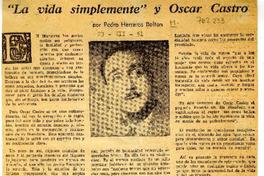 "La Vida simplemente" y Óscar Castro [artículo] / Pedro Herreros Bolton. El Mercurio (Diario : Santiago, Chile)-- dic. 23, 1951. .