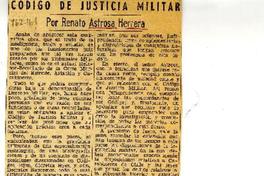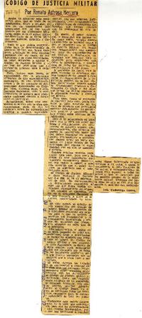 Código de Justicia Militar [artículo] / Luis Undurraga Correa. El Diario Ilustrado (Diario : Santiago, Chile)-- Noviembre 14, 1943, página 10. .