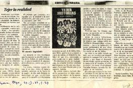 Tejer la realidad [artículo] / Mariano Aguirre. La Epoca (Diario : Santiago, Chile)-- abr. 24, 1987, p. 24. 1 página : ilustración en blanco y negro. .