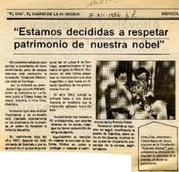 "Estamos decididas a respetar patrimonio de nuestra Nobel" [artículo]