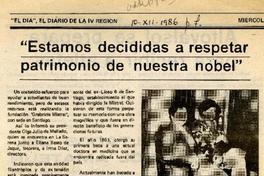 "Estamos decididas a respetar patrimonio de nuestra Nobel" [artículo] El Día (Diario : La Serena, Chile)-- dic. 10, 1986, p. 7. 1 página : ilustración en blanco y negro. .
