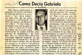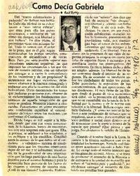 Como decía Gabriela [artículo] / Raúl Rettig. Las Últimas Noticias (Diario : Santiago, Chile)-- oct. 7, 1986, p. 2. 1 página : ilustración en blanco y negro. .