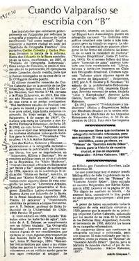 Cuando Valparaíso se escribía con "B" [artículo] / Adolfo Simpson T. El Mercurio (Diario : Valparaíso, Chile)-- nov. 6, 1992, p. A3. 1 página. .