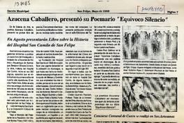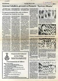 Azucena Caballero, presentó su poemario "Equívoco silencio". [artículo] Gaceta Municipal (Diario : San Felipe, Chile)-- mayo, 1995, p. 7. Unidad documental simple .