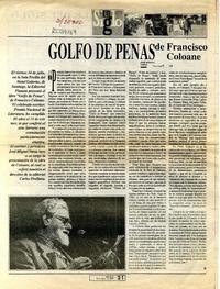 Golfo de penas, de Francisco Coloane [artículo] / José Miguel Varas. El Siglo (Diario : Santiago, Chile)-- jul. 22, 1995, p. 21. 1 página : ilustración en blanco y negro. .