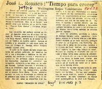 José L. Rosasco: "Tiempo para crecer" [artículo] / Wellington Rojas Valdebenito. Renacer de Chile (Diario : Angol, Chile)-- abr. 6, 1983, p. 3. 1 página. .