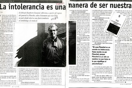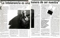 "La intolerancia es una manera de ser nuestra" [entrevista] / [artículo] : Marcelo Soto. Qué Pasa (Revista : Santiago, Chile)-- no. 1509 (Marzo 2000), p. 82-83. 1 página : ilustración en blanco y negro. .