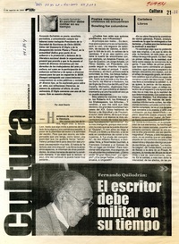 El escritor debe militar en su tiempo [entrevista] / [artículo] : José Osorio. El Siglo (Diario : Santiago, Chile)-- no. 1153 (agosto 2001), p. 21-22. .