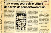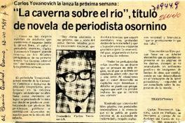 "La caverna sobre el río", título de novela de periodistas osornino [artículo] El Austral (Diario : Osorno, Chile)-- ago. 13, 1984, p. 8. 1 página : ilustración en blanco y negro. .