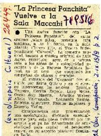 "La princesa Panchita" vuelve a la sala Maccabi [artículo] El Sur (Diario : Concepción, Chile)-- sept. 2, 1979, p. 2. 1 página. .