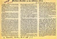 Matías Rafide y su última obra [artículo] / Gustavo San Martín. La Discusión (Diario : Chillán, Chile)-- ago. 26, 1984, p. 2. 1 página. .