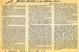 Matías Rafide y su última obra [artículo] Gustavo San Martín.