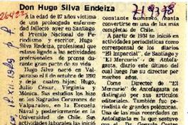 Don Hugo Silva Endeiza [artículo] El Mercurio (Diario : Valparaíso, Chile)-- dic. 17, 1979, p. 7. 1 página. .