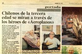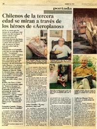 Chilenos de la tercera edad se miran a través de los héroes de "Aeroplanos" [artículo] / Alberto Oyarzo Q. [y] Marilyn Anastasov. La Segunda (Diario : Santiago, Chile)-- mar. 12, 1992, p. 20-21. 2 páginas : ilustración en color. .