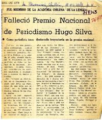 Falleció Premio Nacional de Periodismo Hugo Silva [artículo] La Discusión (Diario : Chillán, Chile)-- dic. 18, 1979, p. 4. 1 página. .