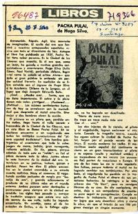 Pacha Pulai [artículo] 7 Días (Santiago, Chile)-- no. 3289 (mayo 17, 1968). 1 página : ilustración en blanco y negro. .