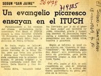 Un evangelio picaresco ensayan en el ITUCH [artículo] El Siglo (Diario : Santiago, Chile)-- Marzo 18, 1969, página 10 1 página : .
