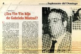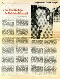 Era Yin Yin hijo de Gabriela Mistral? [artículo] / F. Moraga A. El Día (Diario : La Serena, Chile)-- ene. 19, 1986, p. 4-6 (suplemento) 1 página : ilustraciones en blanco y negro. .