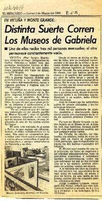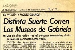 Distinta suerte corren los Museos de Gabriela [artículo] / Sergio Mardones. El Mercurio (Diario : Santiago, Chile)-- mar. 3, 1986, p. C3. 1 página : ilustración en blanco y negro. .