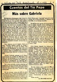 Cuentos del tío Pepe "Más sobre Gabriela" [artículo] / El Tío José Salinas. La Estrella del Norte (Diario : Antofagasata, Chile)-- feb. 18, 1986, p. 4. 1 página. .