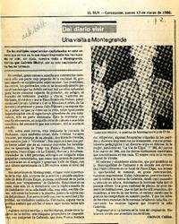 Una visita a Montegrande [artículo] / Cronos. El Sur (Diario : Concepción, Chile)-- mar. 13, 1986, p. 2. 1 página : ilustración en blanco y negro. .