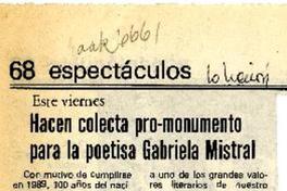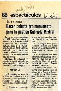 Hacen colecta pro-monumento para la poetisa Gabriela Mistral [artículo]