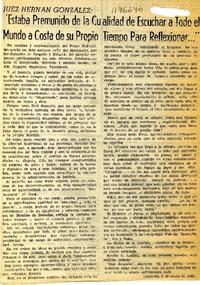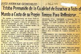 "Estaba premunido de la cualidad de escuchar a todo el mundo a costa de su propio tiempo para reflexionar..." [artículo] : Hernan Gonzalez. La Prensa (Diario : Curico, Chile)-- mayo 5, 1980, p. 5. 1 página. .