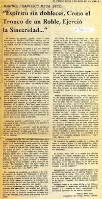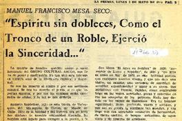 "Espíritu sin dobleces, como el tronco de un roble seco, ejerció la sinceridad..." [artículo] : Manuel Francisco Mesa Seco.