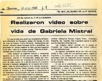 Realizaron video sobre vida de Gabriela Mistral [artículo] El Día (Diario : La Serena, Chile)-- ago. 11, 1986, p. 8. 1 página. .