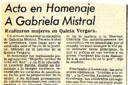 Acto en homenaje a Gabriela Mistral [artículo]